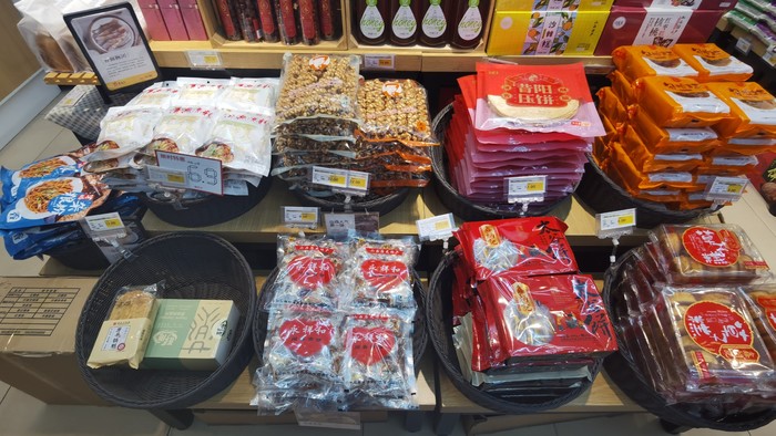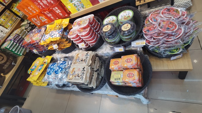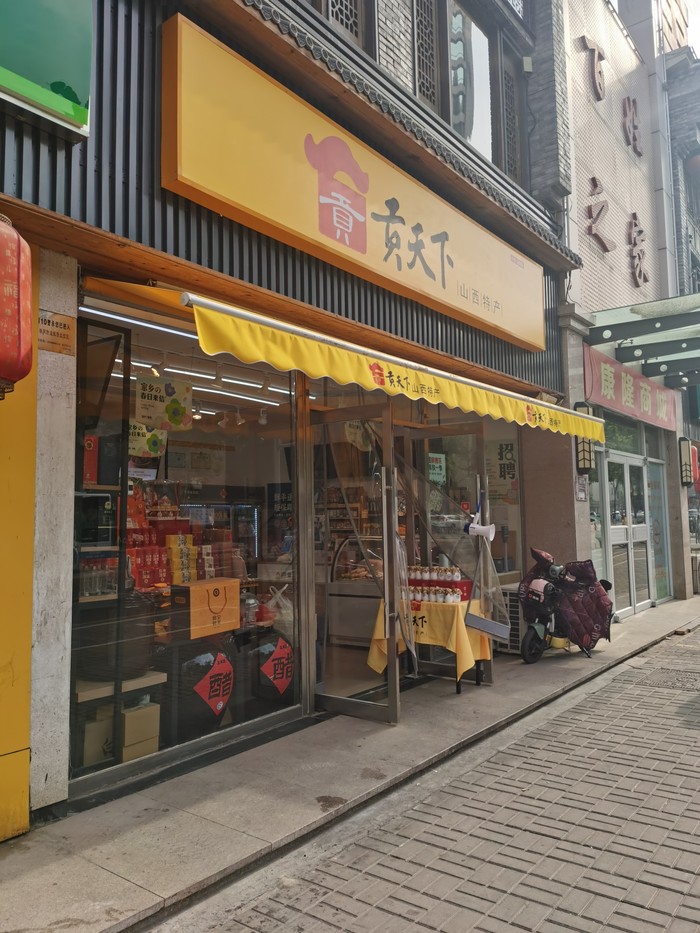 贡天下是一个连锁的特产店,我之后在高铁站也看到了,价格稍稍贵一点。贡天下各种类型的特产都有,也不只是太远,山西其他地方的也都有,我们主要选了一些醋相关的小点心,当地的老酸奶是9块钱一瓶,点评团购或者抖音团购是15块9四个很划算。其他的很多点心点评上都是有团购的,建议买的小伙伴儿可以提前先看看,如果有的话可以用团购。没有团购的话,大众点评还有45抵50和90低100的券儿,要划算很多,付款的时候记得买。