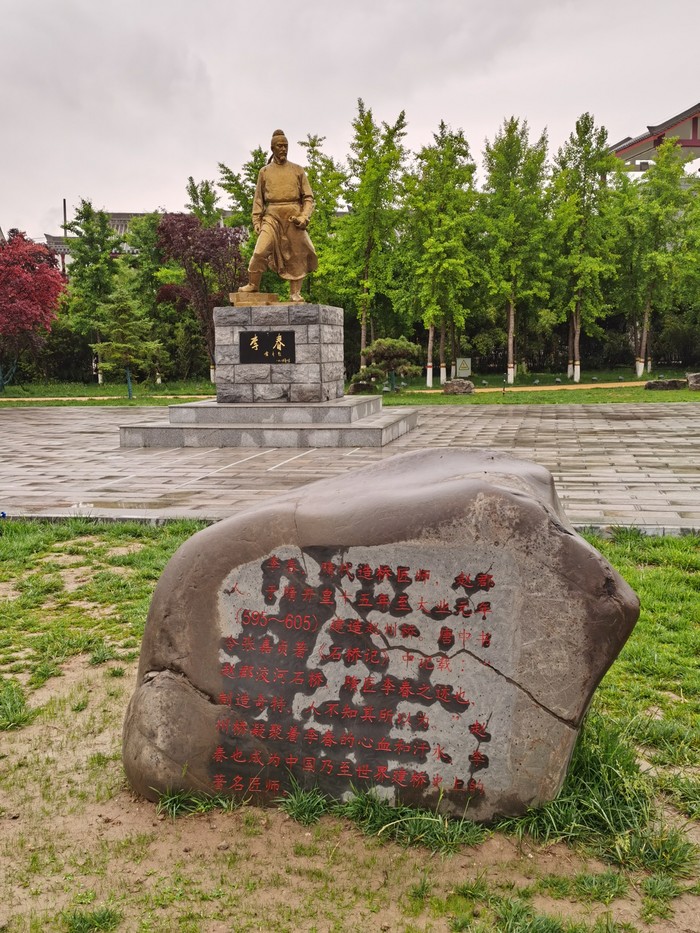 在门口买票,门票40,使用石家庄惠民卡换票后,在门口外面可以先看到一张很大的地图,认为景点儿会很大,但实际上开放的区域很少。路线基本上是大门-影壁-李春像-赵州桥-乾隆题字碑-返回入口。整个参观大概0.5-1小时,建议听个讲解,或者跟着旅行团儿蹭蹭讲解,或者自己仔细看看介绍,不然光看桥可能很快就会参观完。桥梁博物馆没有开放,关帝庙目前仅能看到一组雕像,没有正式开放。