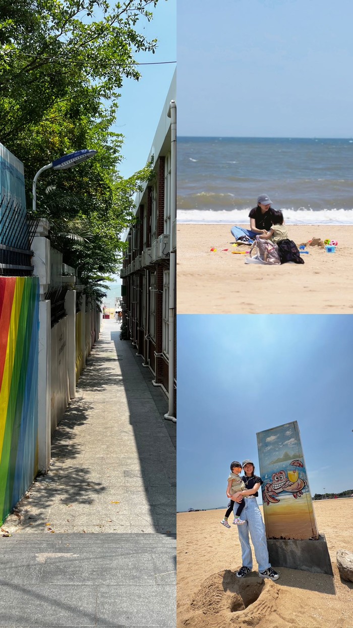 阳台有个大秋千,酒店赠送了挖沙工具,离观音山沙滩较近,人少且漂亮!