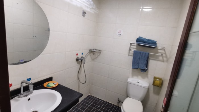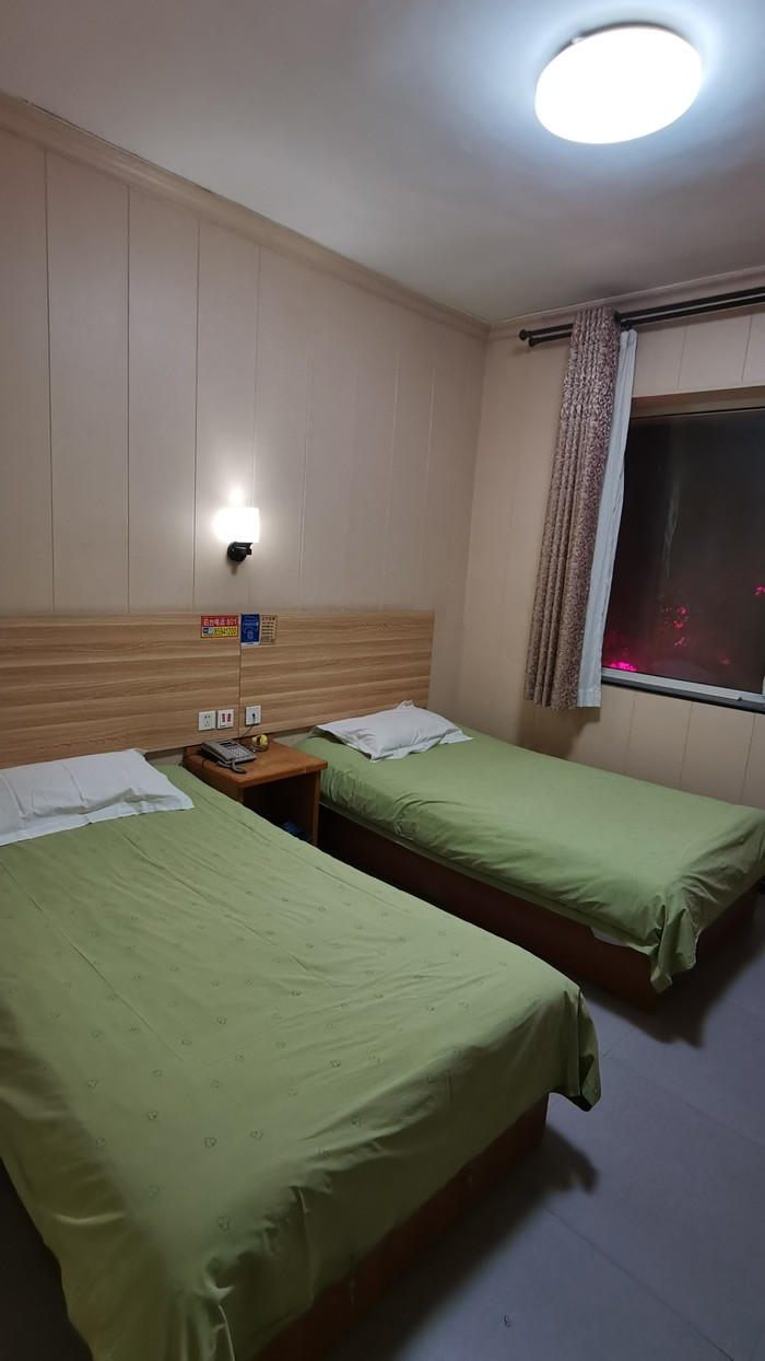 门口刷身份证登记后给安排了三楼的房间,没有收押金,电梯在里面可以看到酒店后院,有停车位,可以免费停车。房间面积不小,有单独的小饮水机,其他设施也都充足,热水很冲。看着整洁、舒服。不过刚吃饱准备消消食,去附近的古城墙看看。