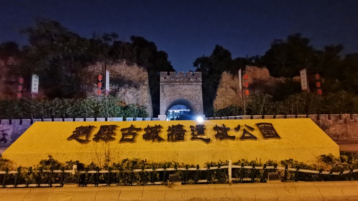 酒店到城墙大概一公里多点,走过去差不多20分钟,一路上有路灯,还算安全吧。古城墙只有南门口这一小段,我来的时候比较黑了,只能看到土,据说是汉代的。公园里面应该是有雕塑的,不过太黑都看不到,只能听到小朋友们在嬉闹。两侧有灯的是步道,有还在慢跑的人。从公园北门出来以后可以大概一路向西,百度地图上没有路,但是有电动车驶过,我尝试了一下,果然回到了来时的大路,不用再原路返回了。