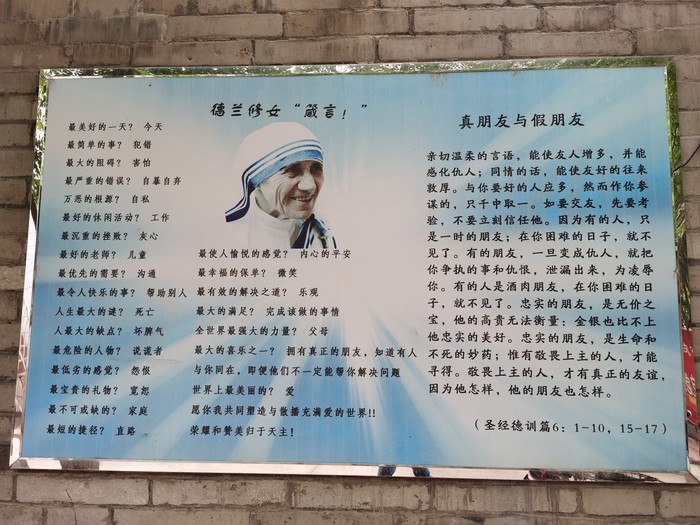 大门儿白天晚上都开着,可以随意进里面参观。我们来的时候教堂没开门,有其他游客联系了修士帮忙开了门,里面很漂亮,很多年轻人进来拍照参观,大家都很安静。外面的墙上是对天主教的宣传和介绍。