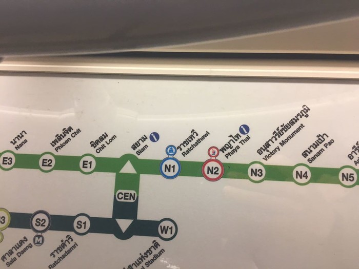 我们接触了2023年6月6日夜班的BTS轻轨的4个站的Phaya Thai(N2帕亚泰站,与素万那普机场城轨快线Phayat Thai站交接)、Siam(暹罗站,重要的0号中转站)、