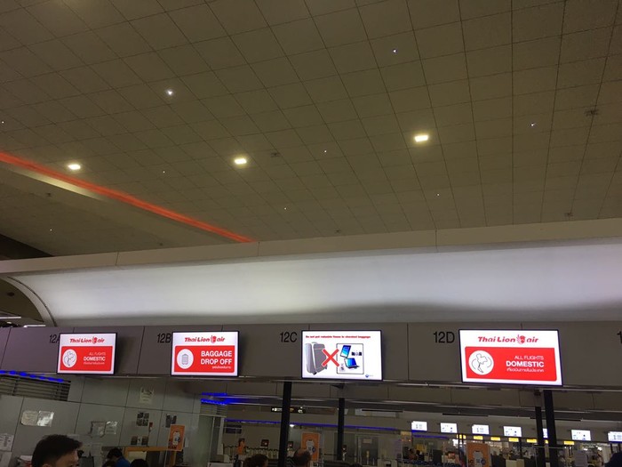 在廊曼机场T2航站楼狮航柜台(11、12号),排队值机旅客有30人左右,连排队时间在内11分钟办完值机,效率还是很高的。