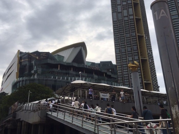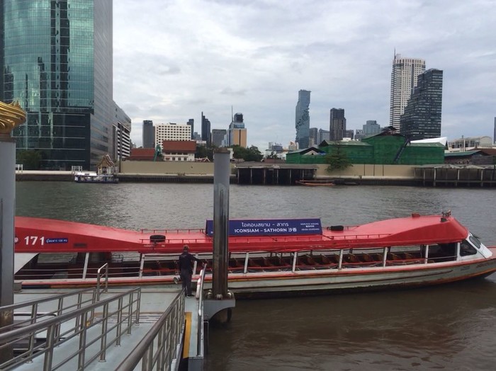 由沙吞-Icon Siam暹罗天地的红色专线船10泰铢/人(已经没有免费的了),有指示牌,专用登船口。