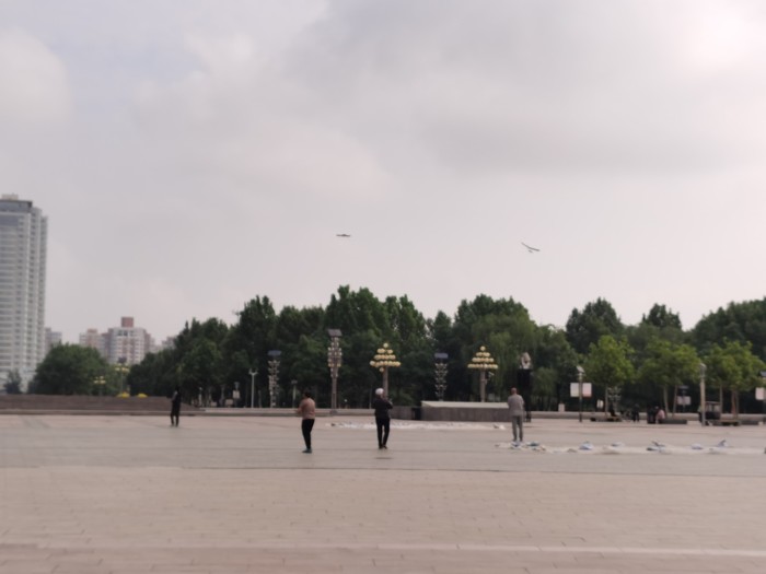 军校广场面积很大,因为是建在陆军军官学校遗址上,所以叫做军校广场。广场上主要是低矮的植物,还有一些浮雕、雕塑。中间能看到很鲜明的喷泉孔,估计会有音乐喷泉表演。两侧处有树荫,锻炼的小伙伴儿们很多,中间还有很多放风筝的,抬头向上上看,已经飞了很高很远。
