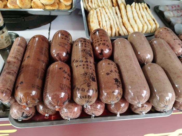 他家主要是卖各种火烧小吃,没有炒菜,也不能堂食。我自己也吃不太多,就只要了一个驴火+尖椒,驴肉现切很碎,我直接拿着准备一起火车上吃了。火烧是长条形的,和北京相同,与保定的圆形有很大差距。虽然过了一个多小时,味道还是不错,饼还是温热,硬、翠。就是肉稍稍有些咸,还好放了青椒,搭配着好一些。