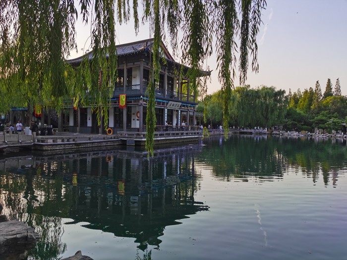 五龙潭公园面积不小,和趵突泉差不多,这里当地人就多了很多,晚上很多来溜孩子的,多了很多生活气息。游览顺序大概是东蜜脂泉-回马泉-东流泉-月牙泉-北洗钵泉-古温泉-玉泉-潭西泉-七十三泉-清泉-五龙潭-显明池-官家池-廉轩-秦琼祠-东门。泉池面积大,上升泉比较多,水里多养着鱼,晴天拍照应该很漂亮。