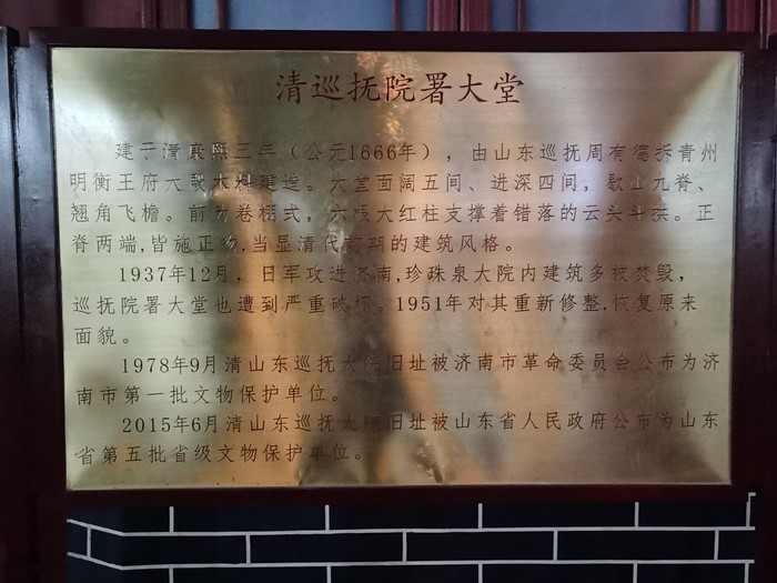 珍珠泉是济南四大名泉之一(趵突泉、黑虎泉、珍珠泉、五龙潭),从它位于大明湖公园南侧的山东省人大院落内(也叫珍珠泉大院),明清时期这里曾是山东巡抚的驻地。