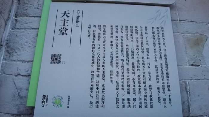 看评价说不对外开放,我到的时候可能也太晚了,确实没有开放。旁边有详细的介绍,还可以扫码听讲解。教堂全名圣母无染原罪堂,奉无染原罪圣母为主保,是济南市第一座天主教堂,也是现存最古老的天主堂,建筑中心合璧,很有特色。