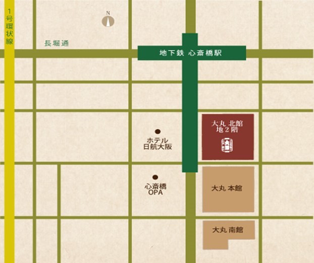 1.电车线路:从地铁「心斋桥」站6号出口步行1分钟。