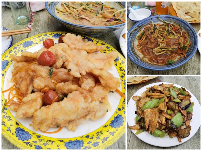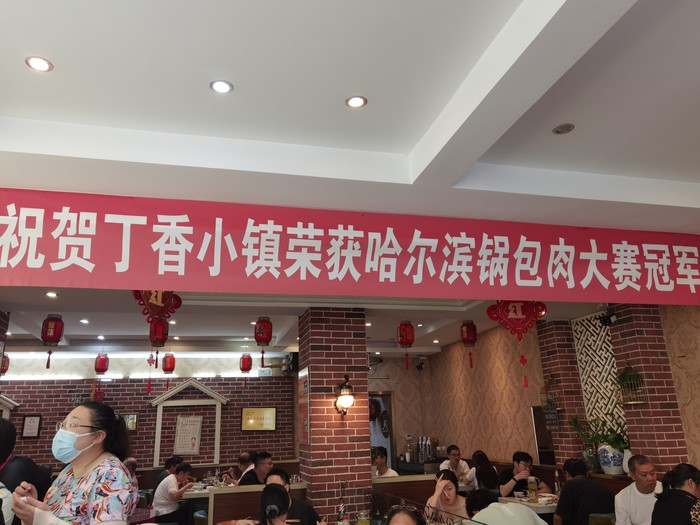 十分钟决定第一餐吃这个网络热评的丁香小镇,果不其然,午饭点到店,排队到店外,户外露天享受。老式锅包肉必点(山楂老式锅包肉),地三鲜回忆,大拉皮降温,奶香手撕饼略微点缀。虽然对菜量有逾期,但是2人三菜还是远超我俩的额定食量,饱餐一顿,评分和味道还算匹配。