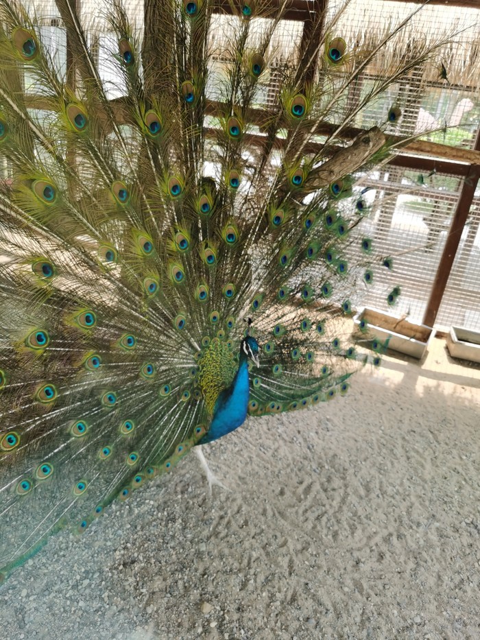 我到的时候是上午10点,从鸟语仙境开始参观,外面就直接看到了正在开屏的孔雀,哈哈,看来今天运气不错。一路往里面走,两侧有水,主要是鸭,鹅,一点都不怕人,很多,直接飞到路中间再走。走到尽头是鸽子广场,这里可以喂鸽子。