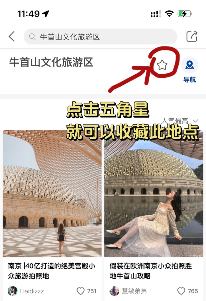 在“地点主页”,点击“五角星”就可以收藏此地点。