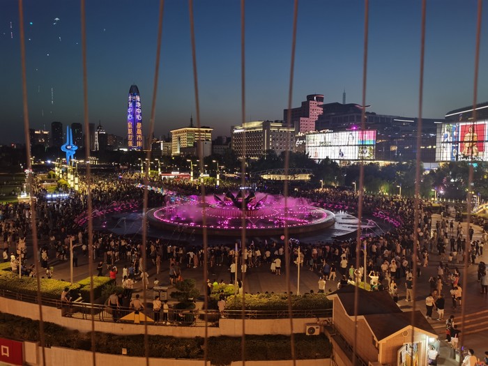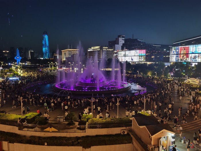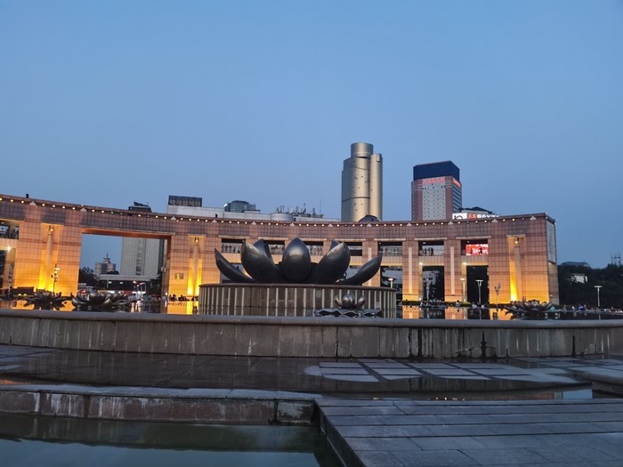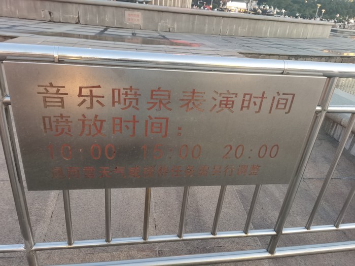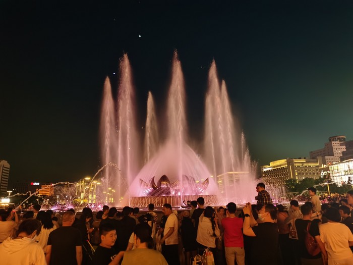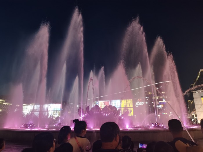 整个广场的设计紧扣“泉”的主题,正中央坐落着篆书“泉”字的造型。广场东部的荷花音乐喷泉中间是荷花雕像。之前看了介绍说晚上有音乐喷泉就过来了。西侧有三层楼高的观景台,可以走上去从高处看喷泉。晚上8点准时开始,怎么说呢,可能期待过高了。喷泉变化多样,颜色多彩,不过相似度高,几分钟后就有视觉疲劳了。在上面也没有听到音乐声就下来了。平面看是另外的感觉,不过确实没有放音乐。感觉如果有其他的安排不用特意过来打卡。