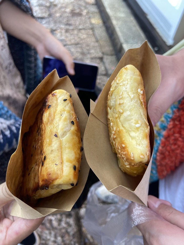 在古城里面吃了烤包子果干冰淇淋还去了一家私处吃了川菜