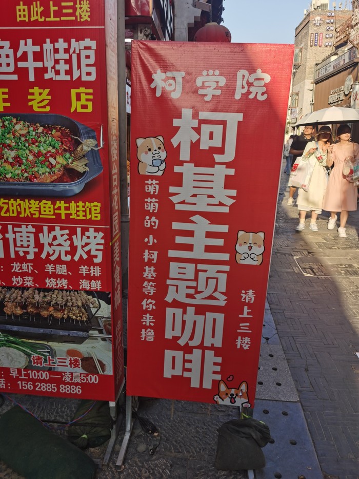 本来以为只是像昨天芙蓉街一样的一条老街,结果刚到门口就看到了盲盒饮料,人气超高,可能正好开出来两个,周围都是欢呼声。进了宽厚里以后中间有一些建筑,不过好像还没有给水,拍照效果一般,建议大家还是去打卡周围的各种特色小店吧。特色餐饮太多了,我看了半天肥肠包大葱,实在是完全不饿就没有尝试,此时十分期待能有个小伙伴可以一起分享啊。中间有个大舜文化园,有科普意义,可以进去看看。出来路上还看到了柯基主题咖啡。。。真的是感觉可以呆一下午。