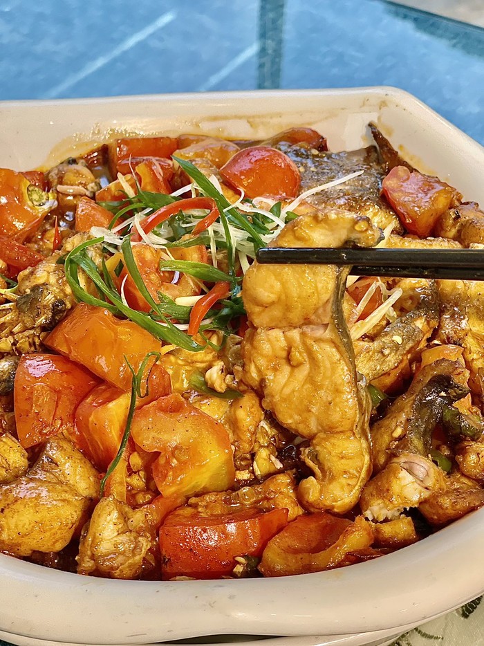 鱼块炸至金黄再用番茄和啤酒煮,肉质鲜嫩,