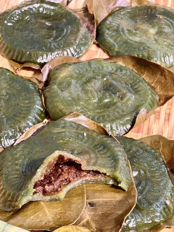 芝麻花生馅不会太甜,咬开能看打碎的艾草!