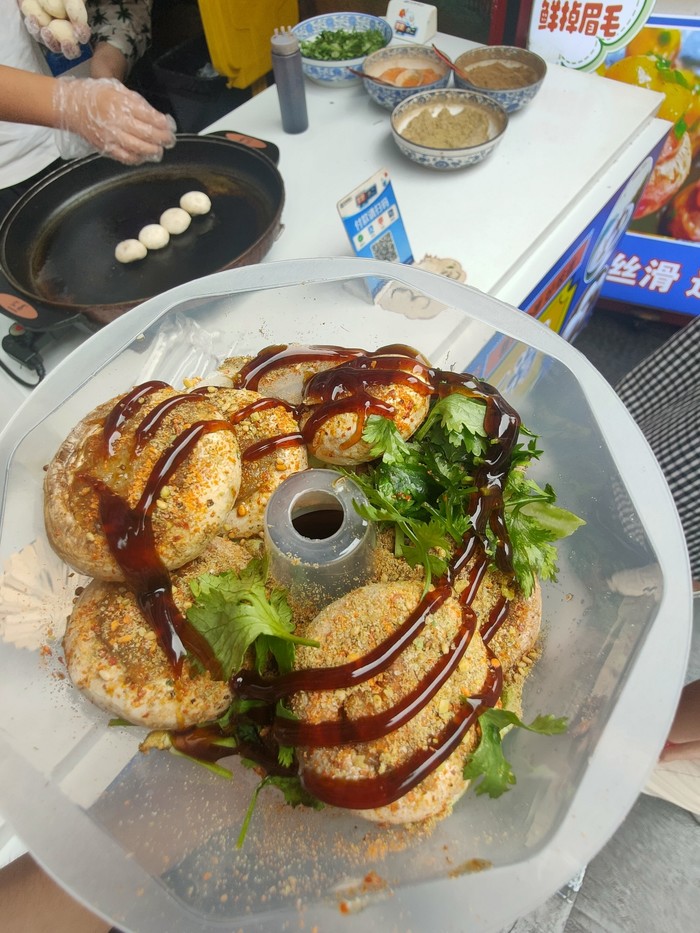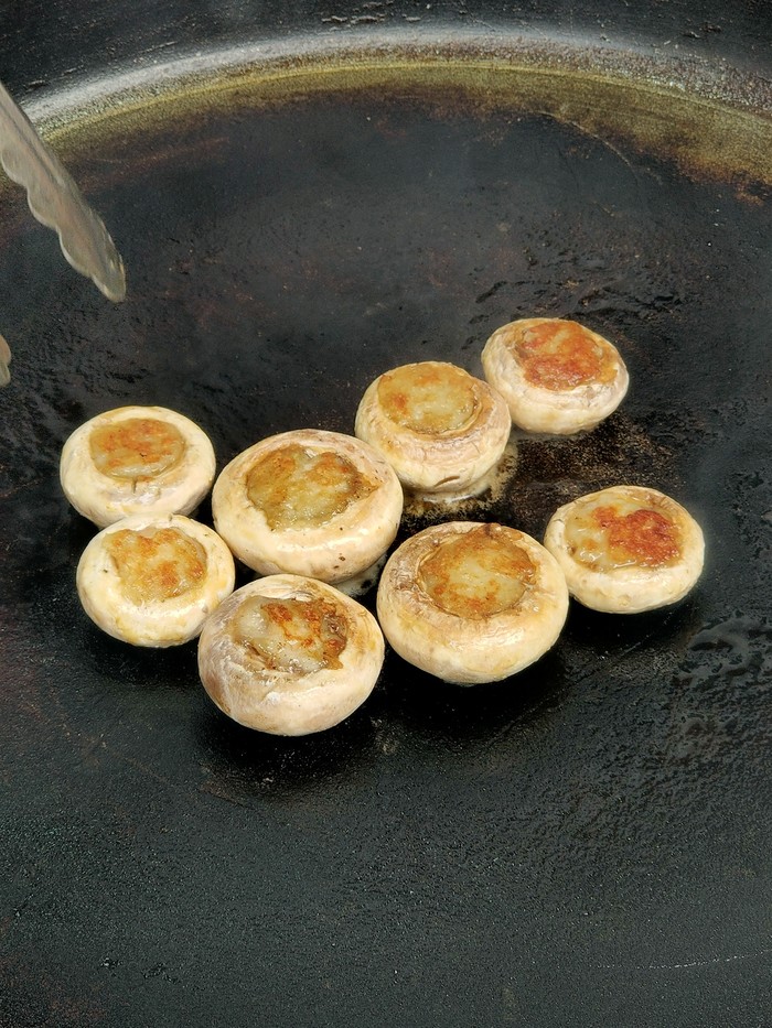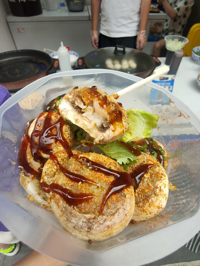 口蘑口感Q弹,配上虾滑的肉味和烧烤香料,上面的海鲜蚝油汁鲜美提味,整一个鲜香软弹,一口的满足