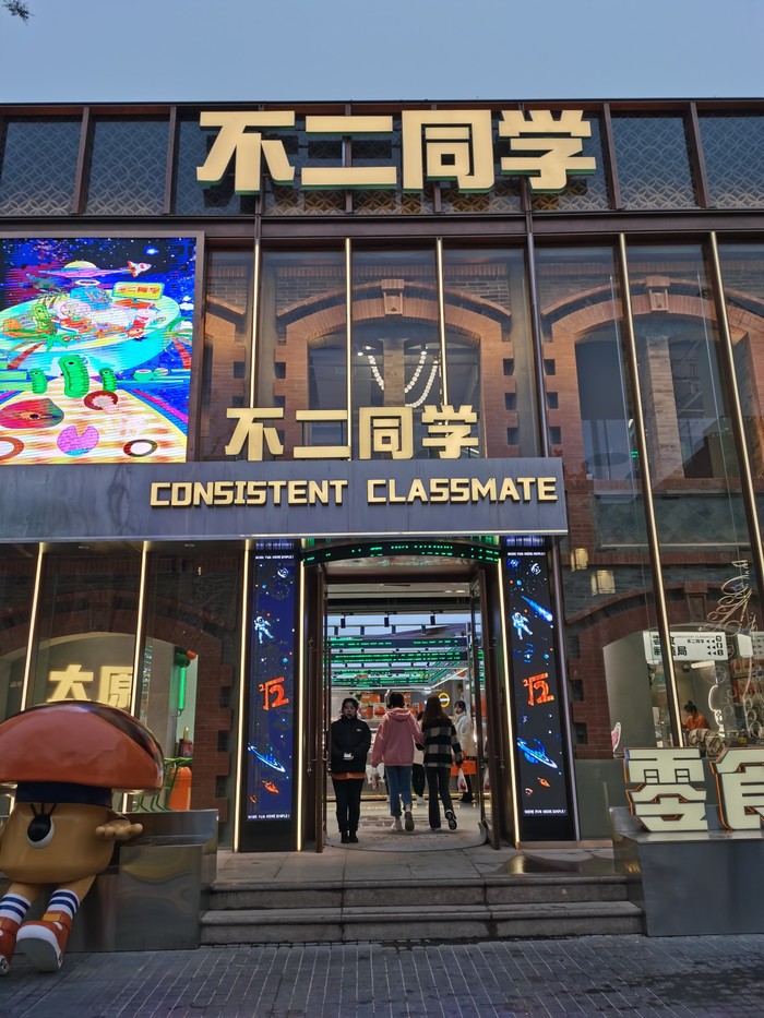不二同学店面很大,主打各种小零食,干货,小点心还有饮品。大部分食品都有免费试吃,而且量都很多,很大气。