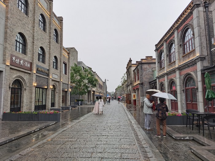 路两侧建筑大概二层楼高,青石板路 ,雨天走过,别有一番幽静。晚上应该会亮灯,会热闹些。两侧多是各种艺术馆、文创店、非遗传承、老字号等等,很适合穿个民族风过来打卡。