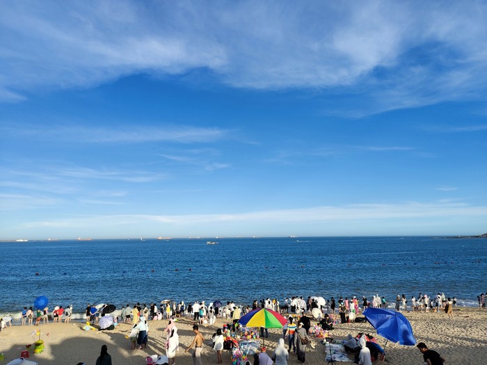 4听海浪去南门湾,这里比较陡,比较危险。沙子颗粒粗,不适合玩。但是天超级蓝。