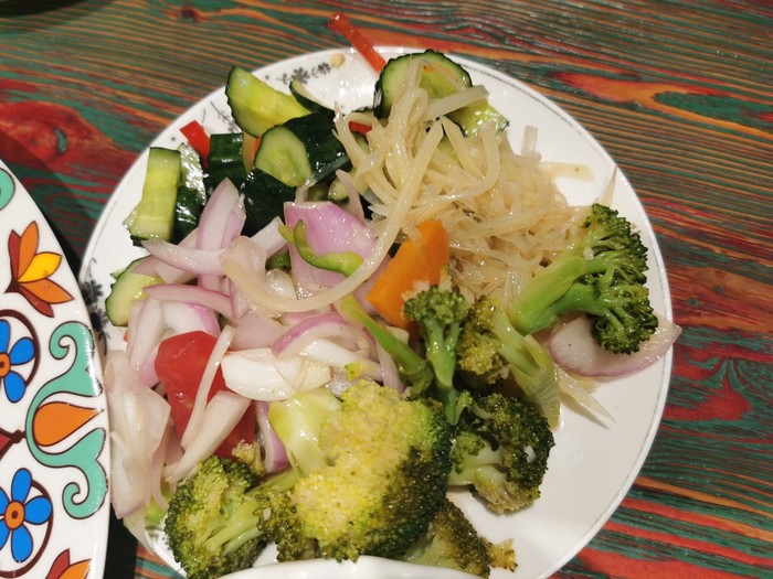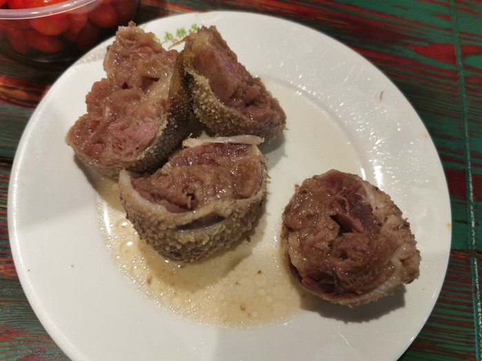 晚上8点多到的,里面正是用餐高峰,还好抢到了最后一张桌子,点餐需要到前面的吧台,于是直接到后面排队点餐了。他家的菜品种类不多,网上点评基本都比较好,所以直接点了前几的。|肉饼子^肉饼是满满一大张八牙,如果人少,可以点小份的。饼子表面软软的,微脆,羊肉馅,很好吃,强烈推荐。|肚包肉^15元一个,可以只点一个,上来的时候会切开两半,肉肥瘦相间,煮的比较嫩。|羊肉串^羊肉串是现穿的,铁签子肥瘦相间,肉量比较多,大概是景点儿周边十元一串的那种。|凉拌米肠面肺子^点了一份儿大份儿的米肠面肺子凉拌的,上来以后量比想象中的少很多,建议三人以上一定要点大份。面肺子感觉像那种碗坨一类的东西,凉拌吃着味道一般,估计热炒更入味,可能会好吃一些。|凉拌小菜^点餐的时候,店员推荐了小菜,十元一盘儿可以拼,上来也算是比较满的一盘,各种菜都有,搭配着肉肉一起吃,解腻清爽。