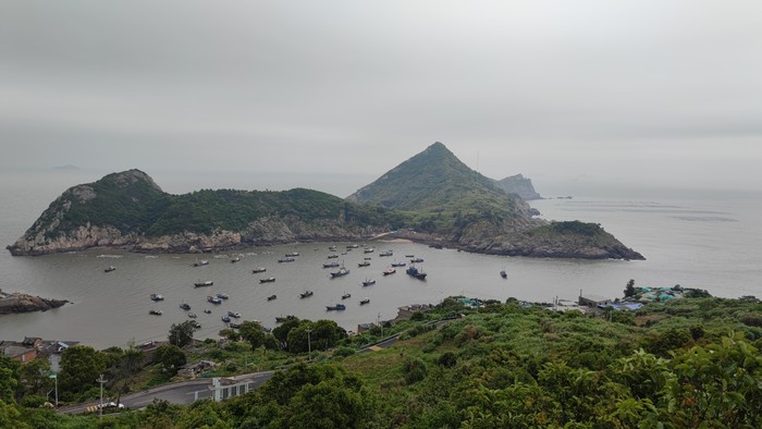 早上出发的早,路上几乎没有什么车,一路都很通畅的到了渔井码头。码头不大,顺利搭乘第一班船上了嵛山岛。船比较小,一路颠颠簸簸,晕乎乎了一路。上岛之后我们人多,所以直接选择了包车,司机是岛上的居民,一路由司机安排我们的路线。当天天气不太好,一直淅淅沥沥在下雨。山上不一会儿就开始起雾了,司机建议我们不要上山顶草场了,什么也看不清。