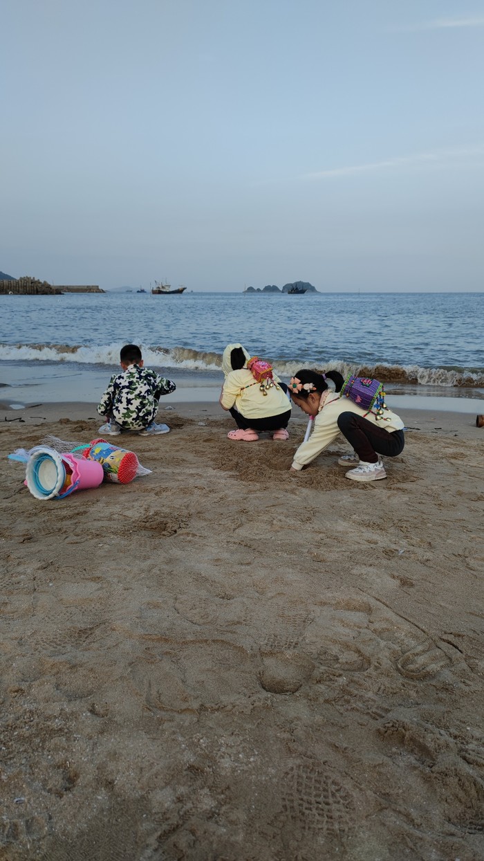 早上下过雨,整个民宿村子的空气都非常清新~按照行程安排,我们5月1日当天晚饭前会前往太姥山。离开温州洞头区时意外发现了一出人烟稀少的沙滩,随即停车游玩。刚好碰上前一波在此游玩的人把挖沙的工具无偿送给我们了,开心~