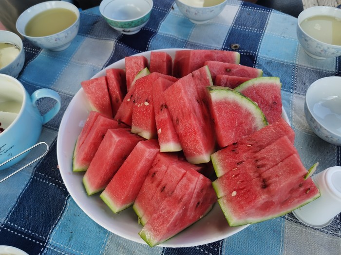 新疆第七天:在禾木村住一晚,导游小马推荐了徒步线路大美丽峰,于是我们走了两个小时到了这个只有十三户人家的哈萨克族村庄,沙吾列大姐家比较大,可以提供骑马往返服务,还有餐饮。我们点了一壶奶茶顺便买了一个西瓜。奶茶是现冲,咸口,味道很正宗,一壶才20元。西瓜8元一公斤,价格也不算贵。他家还可以住宿,有几个外国游客就停在了这里,享受这一份宁静。