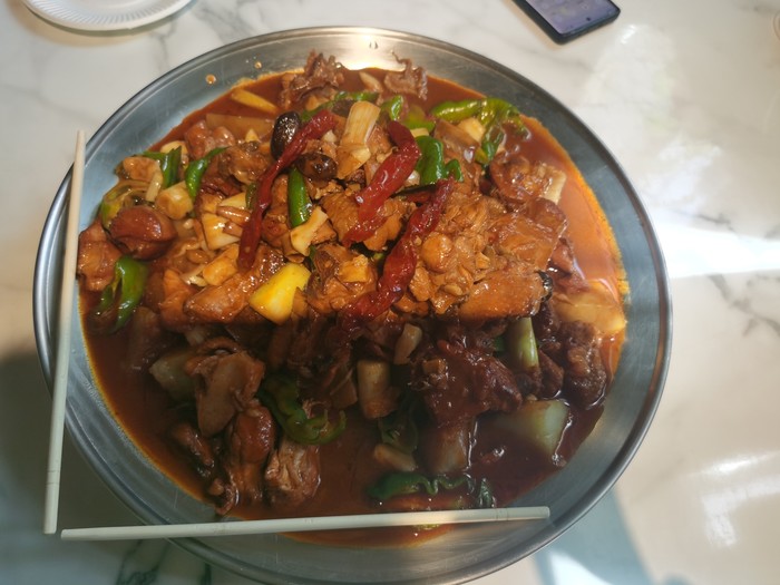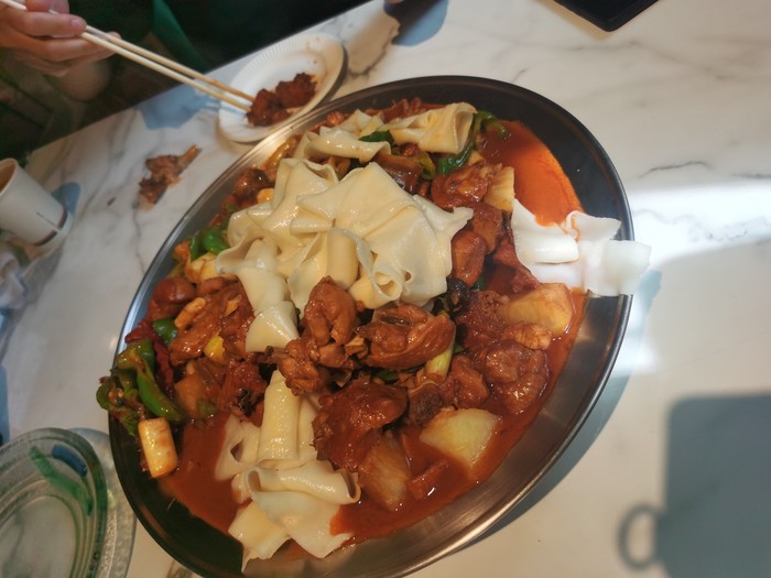 整体感觉:大盘鸡双人餐量不小,三个人吃也是完全可以的。