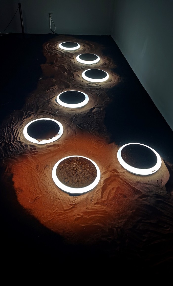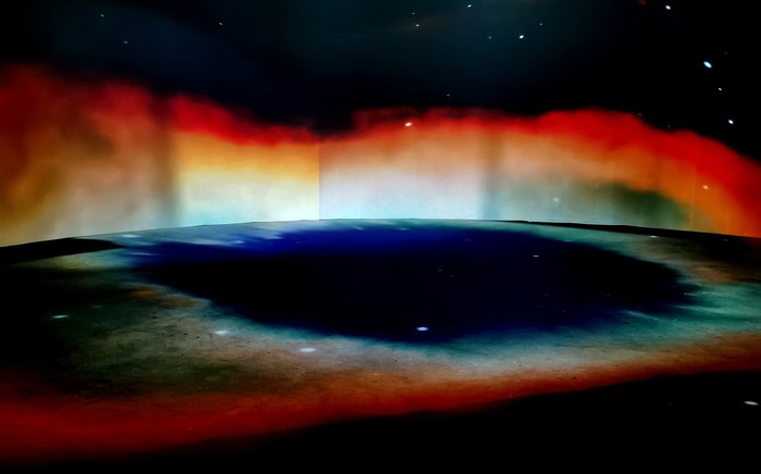 特站的主题名称叫做步天歌,源于以步量天的古代宇宙观。因为是星河角落,所以进来之前以为是和星空有关的艺术摄影特展,打开帘子的一瞬间,微暗的环境、光影的结合、加上各种奇妙的构思,完全是一场科学与艺术并存的视觉盛宴。展品数量不多,只有30件,每一件旁边都有详细的介绍,并且可以微信扫码听台前幕后的创作故事。仔细听讲解,可以在科普的同时,增加对宇宙、星球、浩瀚宇宙观的微妙感知。