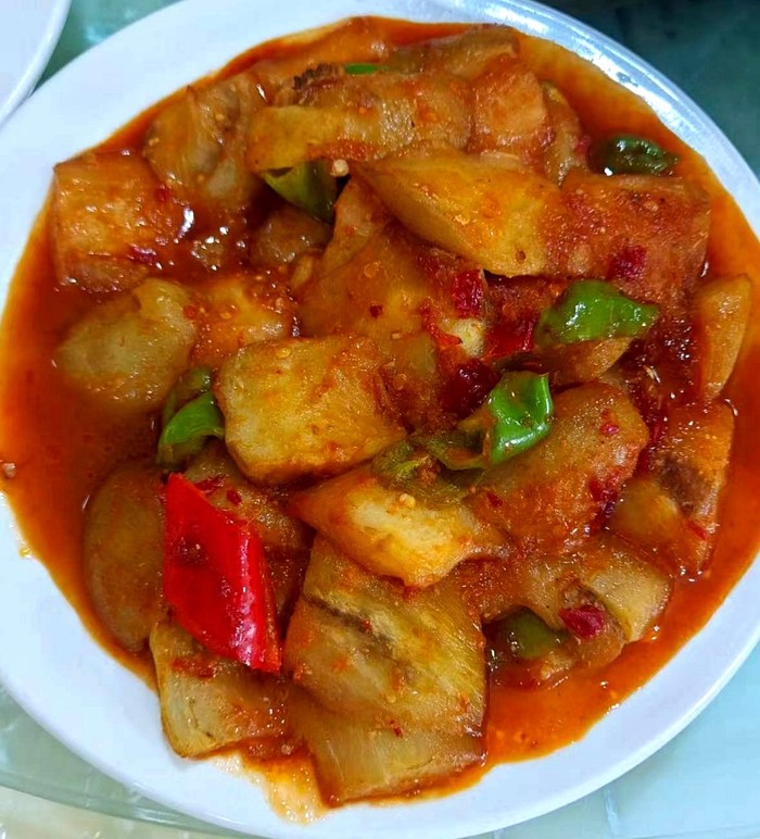 炒土豆丝:土豆丝儿是中辣,同行的导游小哥哥每次都觉得我们的菜不够辣,这道土豆丝的比较嫩,深合他意。