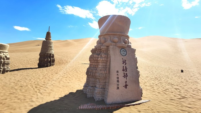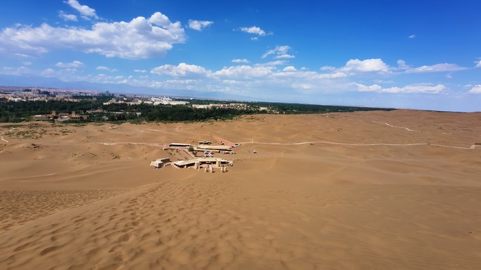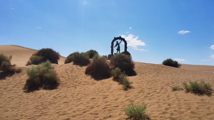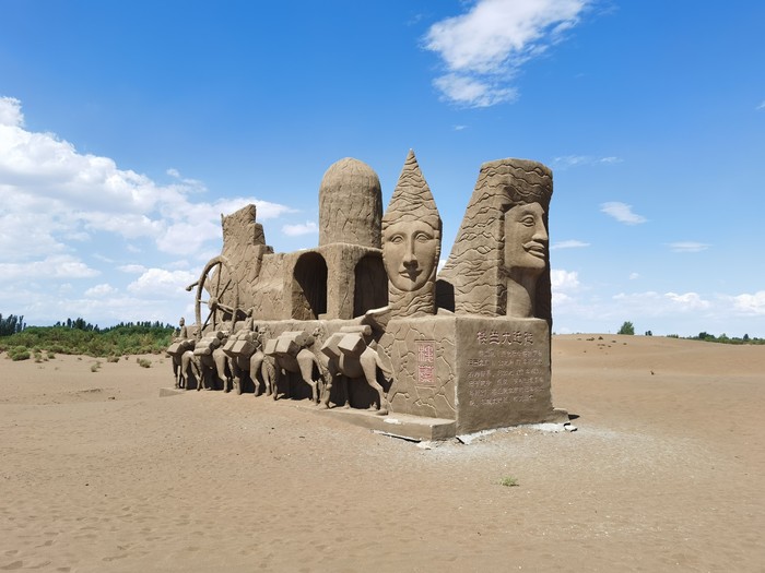 我们到的时候大概3点多,实在是太热了,游玩的性质大减。景区有两趟交通车,常规需要购买线路一:大门-停靠站1-停靠站2-停靠站1-大门。线路二:停靠站2-停靠站3-停靠站2。停靠站1主要是越野车、滑沙、卡丁车、骑骆驼等项目。停靠站2主要是各种沙雕,适合拍照。停靠站3是空中项目。每站都有卫生间,很干净,也有小卖部,可以买一些零食和水。交通车人少时需要人满发车,人多也会及时调度,不用担心。可以组滑沙板和鞋套,建议大家可以提前自己网购沙漠鞋套9.9包邮,就算不玩项目,沙漠里拍照也很方便,结束以后可以拿回去清洗,干的很快,如果短时间内没有其他用处了,也可以直接扔掉,也不算心疼。