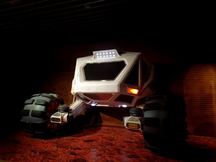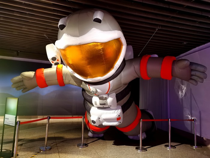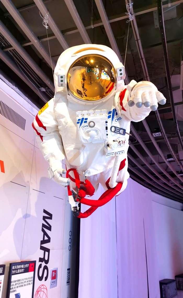 换装体验:接下来可以免费更换宇航服,在相应区域内到处拍照,衣服都是适合小朋友的,尺码最大码是150的,比较宽松,本人160,勉强试了试,可以穿进去,但是腿会短一截,所以只能拍上半身,不过小朋友穿着很可爱哦。