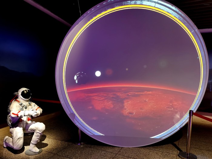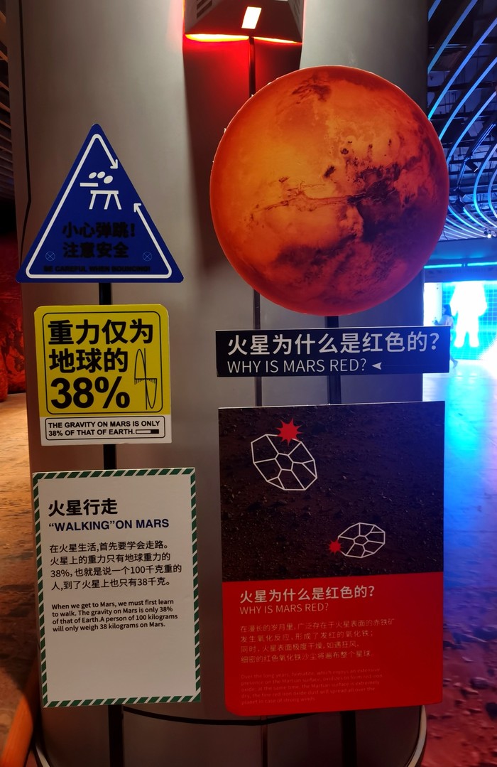 火星行走:一进来就会有小姐姐告诉你欢迎来到火星,然后就是对火星重力的介绍,然后就可以走到蹦床上,感受火星行走的感觉,一定要认真听讲解,因为后面盖章的时候会有提问的。