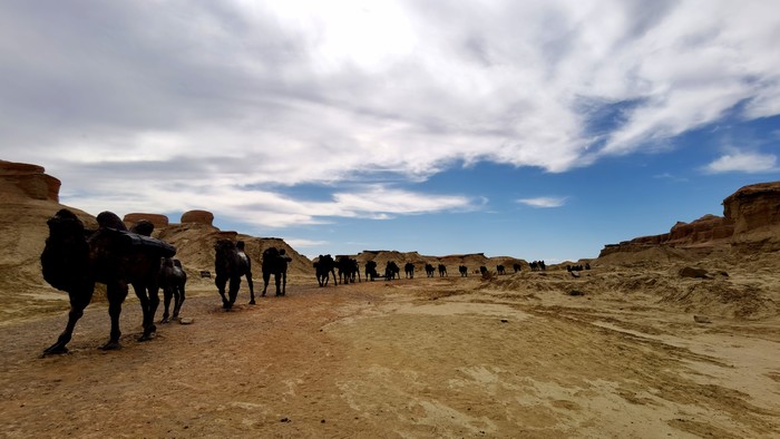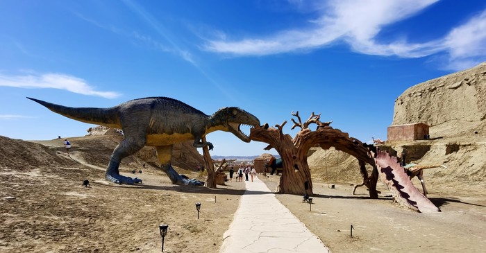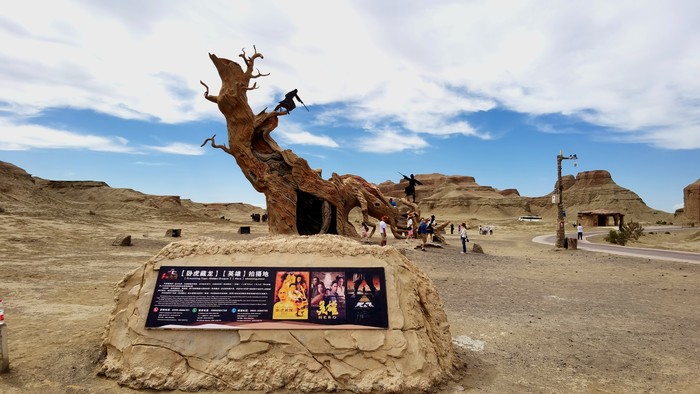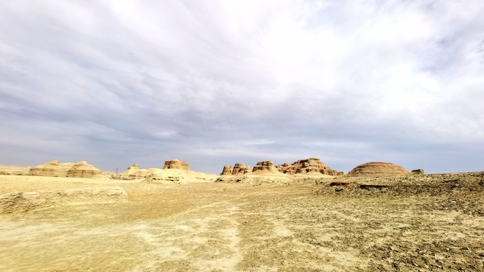 世界魔鬼城因为独特的地理地貌被《中国国家地理》评为“中国醉美雅丹”,景区需要乘坐小火车,20元/人。过来的时候户外很热,小火车一次可以坐不少人,但是需要排队,入口时候等的时间比较长,每人免费拍照,出口时候可以免费领取。一路上车子都有免费景点讲解,根据讲解,车子会停在相应的位置几秒钟供大家拍照。一共四个停车点,前三个必下车,第四个是恐龙谷,精力充沛和带小朋友的小伙伴可以下去看看,拍拍照。