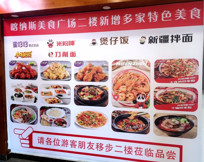 从观鱼台坐车到游客中心后,准备晚饭一下再回去。美食广场在换乘中心后面,二层楼结构,餐品种类丰富,价格确实稍微贵一些,基本每个单品被外面贵10元左右,但是比住的地方还是要便宜的,并且可选择的要多很多,我们基本都各种打包回去。推荐煎饼全套25元,超大一个,小朋友可以两人一个,关键是晚上吃味道也不会变。