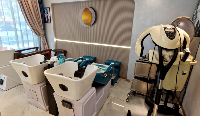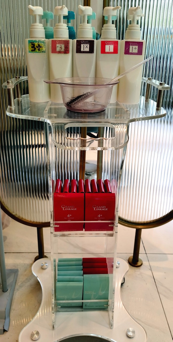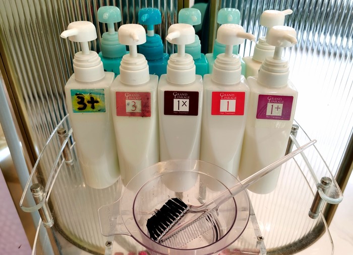 进来以后直接跟小哥哥确认了预约时间和做的项目护理。护理用的是店里从日本原装进口的药剂。首先是对头发进行一个简单的清洗,洗发产品也都是审美自己的,比较有品质保证。护理分三步,全程基本都是靠手法和药剂吸收。首先是使用药剂一对所有的头发进行一个简单的润护,然后添加药剂二,加强反应,使头发更润更顺。大概十分钟后用清水洗去药剂,之后使用药剂三,使头发更顺更亮。结束后用吹风机吹干头发。