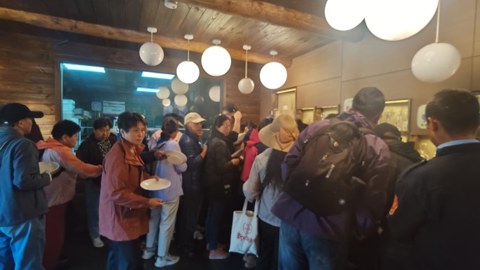 早上八点半开餐,我们25到的,结果发现外面已经排了20人左右,于是果断排队。进去以后先找了桌子,他家设计的很巧妙,到处都是各种植物标本,喜欢的小伙伴可以仔细看看。餐品种类很多,是到新疆这十天内除第一天外,种类最丰富的。还有玉米,东北的小伙伴表示很满意。