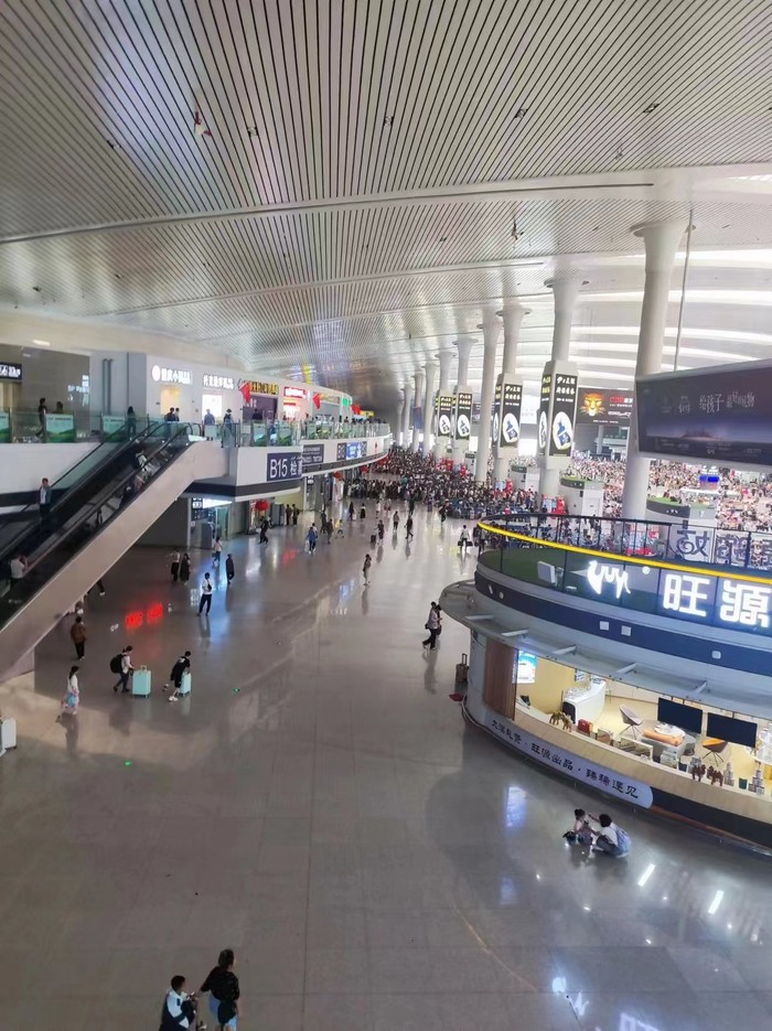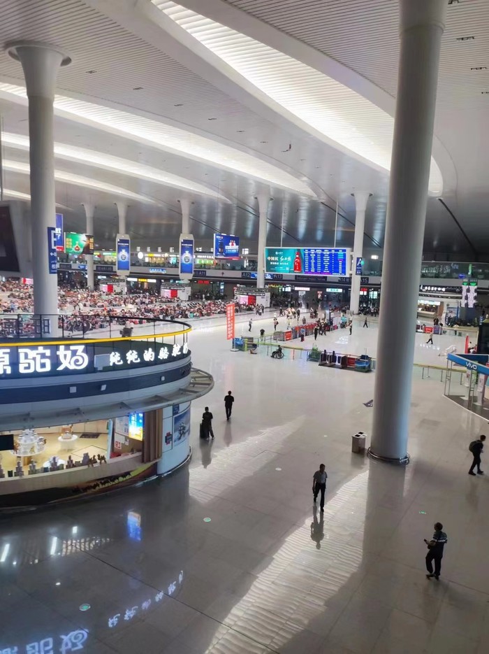 火车行驶的很安稳,再加上一路都比较疲惫,所以晚上睡得很好。七点多醒来以后直接去外面洗漱了,回来顺便吃了早饭。火车提前几分钟就进站了。跟着人流往出站口走,有两个广场,我们直接找了离刷卡机最近的那个,然后找出租车,到了有以后看到车排的很多,乘客几乎不排队。