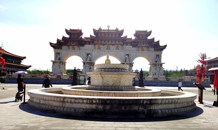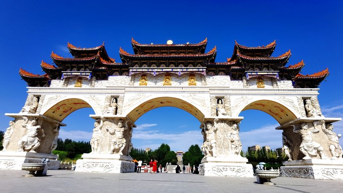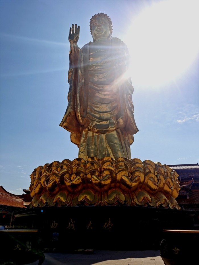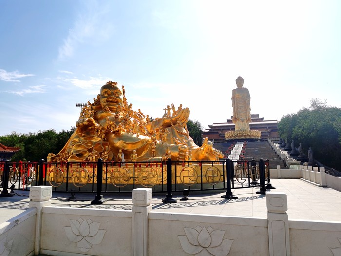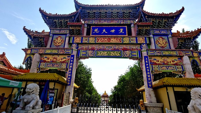 网上搜索的门票是40元,但是我们完全没有找到售票处,好像现在是免费参观。红光山大佛寺是中国西北的第一大汉传佛教寺庙。大佛寺的山门高大雄伟,正面是新疆书法家协会副主席张沧书题写的“觉世大慈”,背面是书法家闵荫南题写的“悯世大悲”。红光山释迦牟尼佛始建于2002年7月19日,2004年底完工,历时两年,被誉为“西域第一大铜立金西北大佛”。门口可以扫码免费听讲解,每一个小景点都讲解的很详细。下面有些地方拦着过不去,基本只能一路向前,然后原路返回。远处可以拍弥勒佛+大佛,每个殿都可以进去参拜,正殿可以左侧进去走一圈右侧出来,两侧是罗汉,还有一些壁画。有信仰的小伙伴可以每个都拜拜,其他小伙伴可以过来和财神打个招呼。