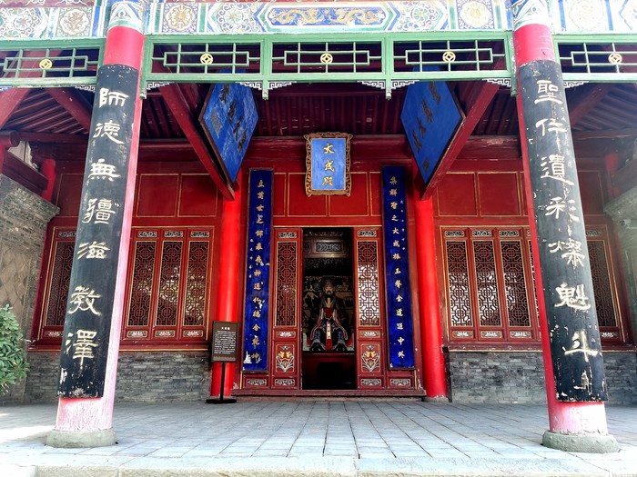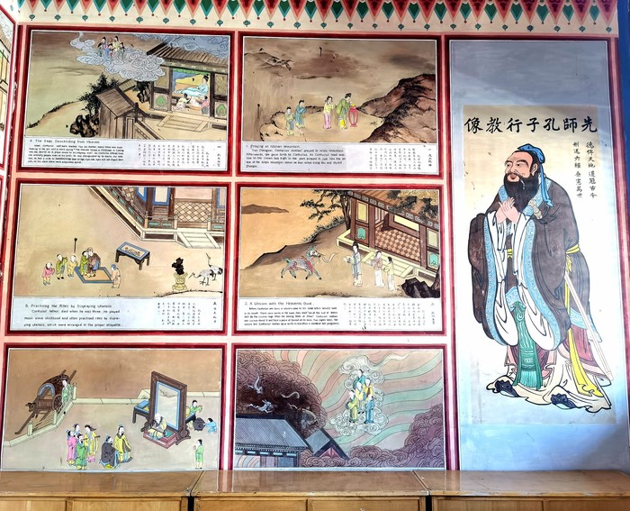 从旧址直接可以过来,不用再次登记身份证了。文庙很小,只有一进院子,左右有厢房,左侧是对家风的介绍,右侧是关于孔子的介绍,图文并茂,很详细。大成殿两侧有钟鼓楼,可以自费操作,适合考生,有很吉祥的寓意。大成殿中间是孔子,两侧是四圣和12哲,没有孔子的弟子。