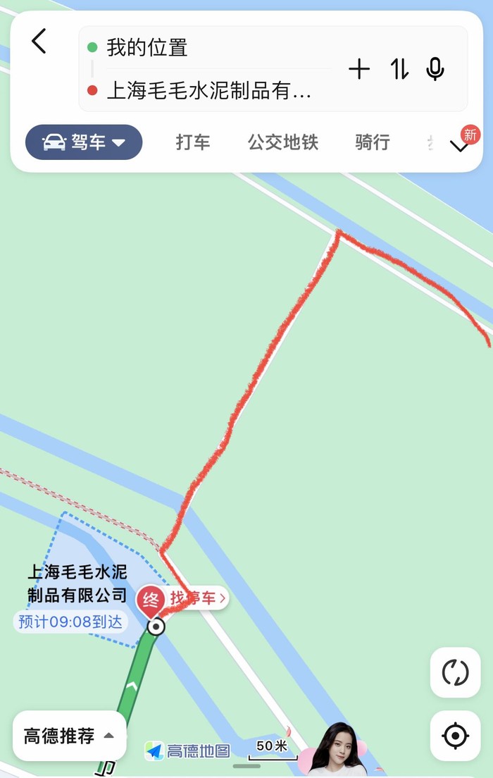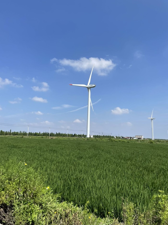 3、首先导航到毛毛水泥制品公司,然后按照图1红线行驶,途中就可以看到大风车和农田拍照打卡了(图2)!
