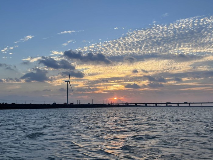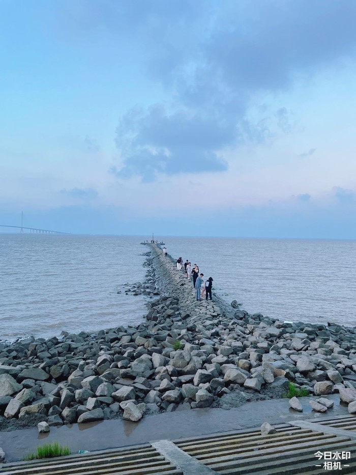 8、继续导航到毛毛水泥厂,按照之前的路线行驶,再次看向大海,神奇的一幕就出现啦,潮水退去,显现出和白天完全不同的景象,《悲伤逆流成河》的取景点丁坝也空降出来啦(这里经常会遇到拍婚纱照的新人哦),趁着夕阳晚霞,疯狂的拍拍拍,各种出大片(图9、10,博主懒得修图,凑活看下吧,哈哈哈),打卡完成就可以考虑返程了哦。