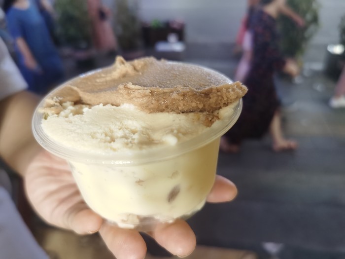 领馆巷上的必打卡冰激凌,除原味外八种口味,15元一盒。我们拼了三种口味,也是15元。可以堂食,也可以直接带走。冰激凌奶含量高,各种味道都是真材实料,巴坦木、核桃、葡萄干都能吃到,真心很实惠,强烈推荐。