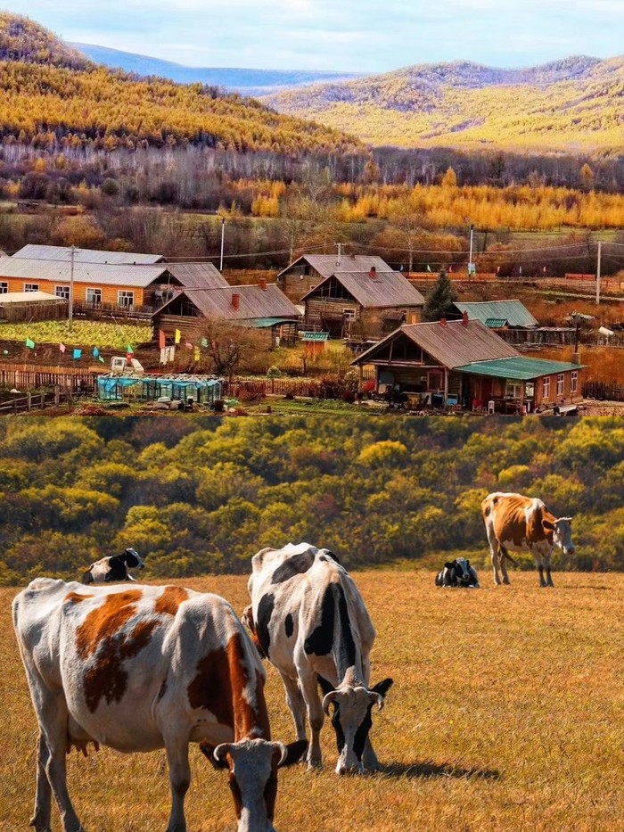 还有秋收的麦田,路边的野花与牛马羊群,与驯鹿,与俄罗斯,蒙古族,鄂温克族,回族,东北风情等相互融合,交相辉映,别提多漂亮了,像童话一般,有无限的想象空间,又难以形容!