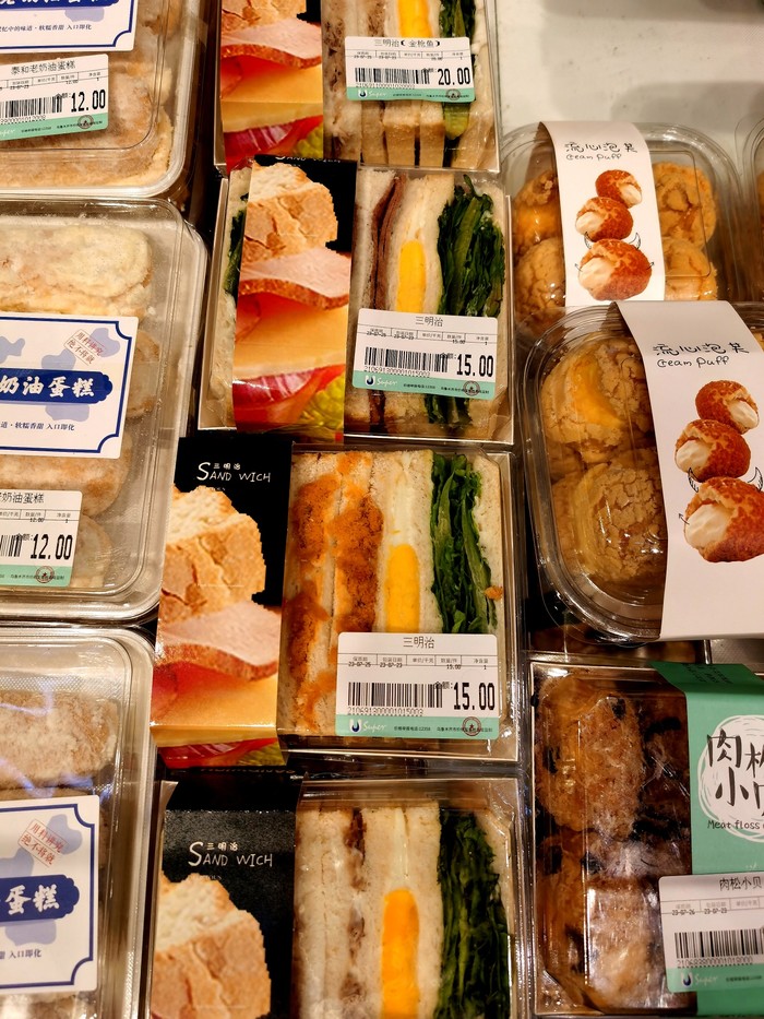超市面积比较大,占据了地下多半层。种类很丰富,进口商品也很多,日用百货、生鲜水果,晚上来的,很多食物都是打折的状态,很适合第二天一日游的我们。饮料、酸奶也都有特价,比普通便利店要便宜很多。