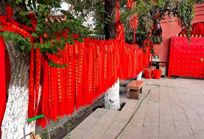 门票10元,不过我们到的时候已经停止营业了,就在大门口拍了一下照。左侧挂满了祈福带,估计平时人气很高。